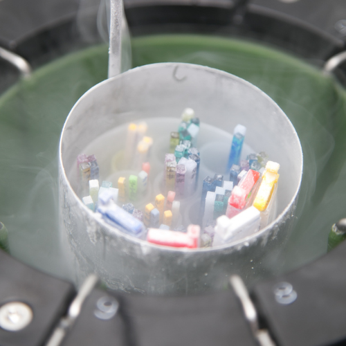 Sperm is processed, frozen, and stored in liquid nitrogen (-196°C).